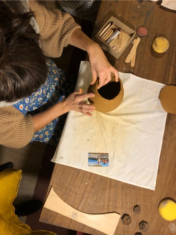 - Pour ce tout premier atelier, je vous accompagne vers la création d’un petit objet (tasse, petit bol, avec anses …) en technique du bol pincé. Vous pourrez venir chercher votre pièce une fois l’émail posé.
